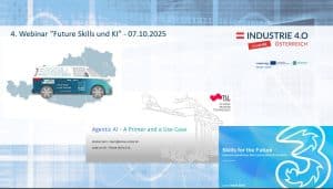 Am 7. Oktober fand das 4. Webinar zu Future Skills & KI im Themenschwerpunkt Arbeit 5.0 statt, das im Rahmen des Interreg AT-SK Projektes „Twin City Future Innovation Manufacturing Hub“ von der Plattform Industrie 4.0 organisiert wird.